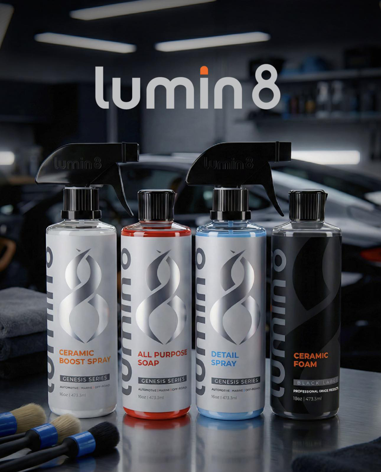 These products are specifically designed to help new ceramic-coating owners care for their cars, trucks, SUVs, motorcycles, watercraft, or off-road toys. Delivering professional-grade results with a user-friendly application, the Lumin8 Genesis Series comprises the only 8 cleaning and protection products you’ll ever need.